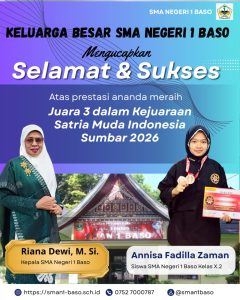 SATU ORANG MURID SMA NEGERI 1 BASO MERAIH PRESTASI JUARA 3 DALAM KEJUARAAN SATRIA MUDA INDONESIA SUMBAR 2026 operator sekolahJanuary 26, 2026 Facebook Twitter WhatsApp Pinterest